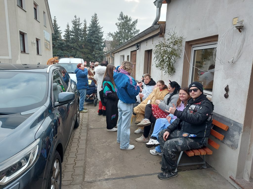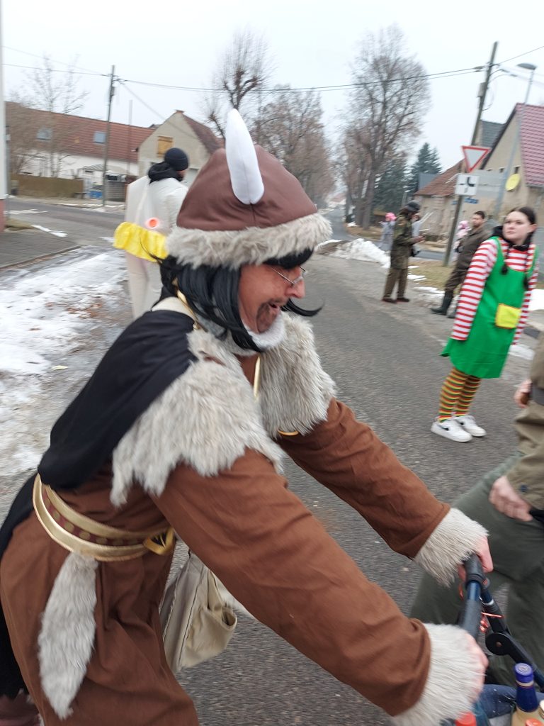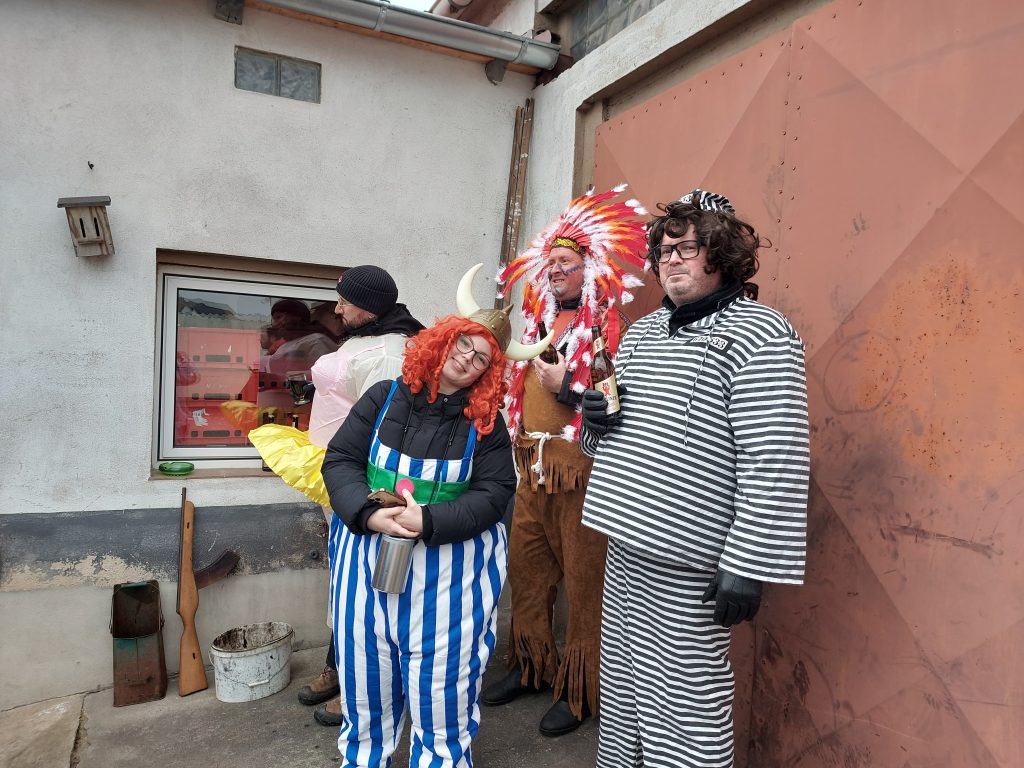 Früher ging noch eine Blaskapelle mit durchs Dorf und heute kommen die Beats aus der Musikbox. Toll anzusehen war es auch, dass immer mehr Kinder der frohen Schar folgten und lautstark darauf aufmerksam machten, Gaben zu erhalten. Der muntere Trupp wurde auf vielen Grundstücken beköstigt und sogar die älteste Mitbürgerin Theisas, ließ es sich nicht nehmen, den Zemperern einen gedeckten Tisch mit selbstgebackenen Waffeln und Kaffee zu kredenzen. Hieran erkennt man, dass die Menschen im Ort es sehr zu schätzen wissen, dass dieses Brauchtum noch immer gepflegt wird. Ein noch wichtiger Punkt, den es zu erwähnen gibt ist, dass ein Teil des Erzemperten der 825-Jahr-Feier zu Gute kommen soll. Großes Dankeschön dafür!